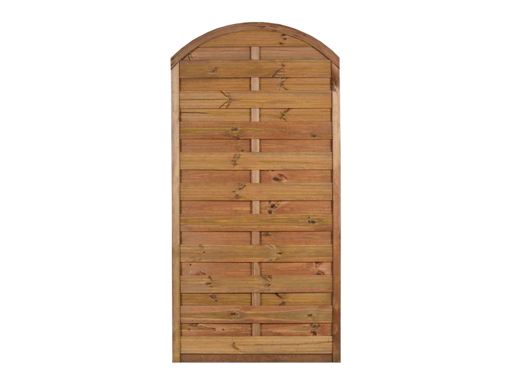 Płot pełny PIA z łukiem o wymiarach 90x180/160cm brąz  łączy w sobie solidność wykonania z klasyczną elegancją.  Wraz z pozostałymi produktami z tej linii tworzy idealną kompozycję podczas urządzania terenów wokół domu. Jest  świetną propozycją na ogrodzenie dużych działek, posesji czy przydomowych ogródków, jak również do zabudowy grillowej.