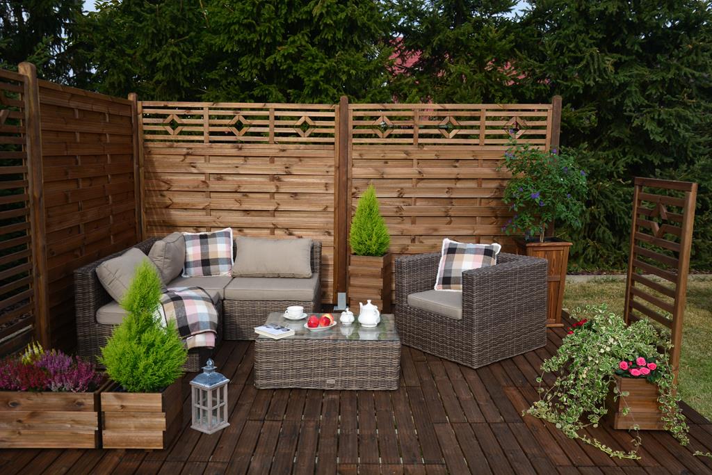 Drewno zostało zaimpregnowane ciśnieniowo, co gwarantuje ochronę  przed działaniem niesprzyjających warunków atmosferycznych, a także przed szkodnikami i grzybami jednocześnie wybarwia drewno  ciepłym brązowym kolorem.