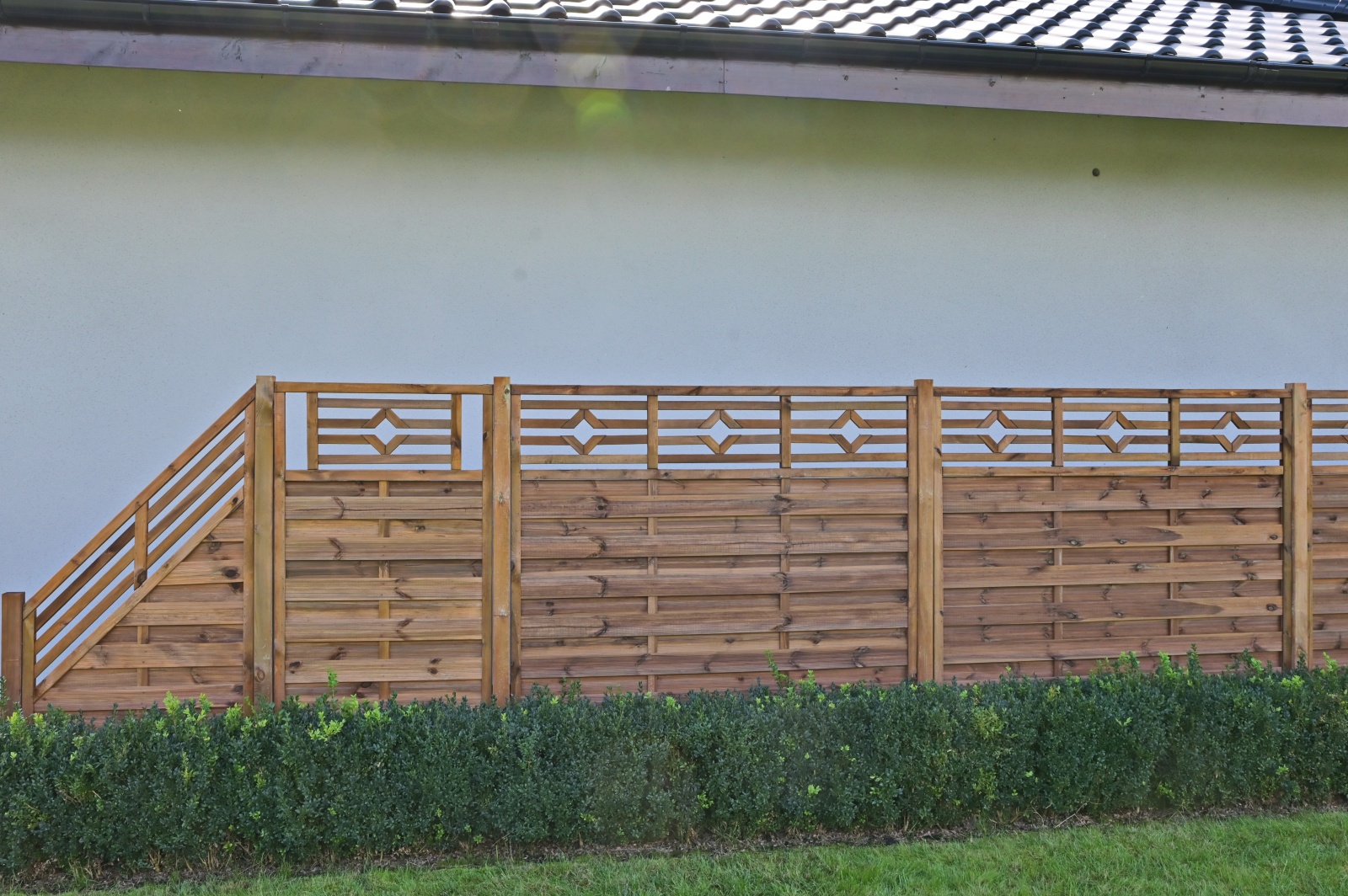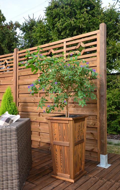Płot ażurowy PIA prosty o wymiarach 180cmx180cm brąz odznacza się minimalistycznym a zarazem folkowym ornamentem.  Łączy w sobie solidność wykonania z klasyczną elegancją.  Wraz z pozostałymi produktami z tej linii tworzy idealną kompozycję podczas urządzania terenów wokół domu. Jest  świetną propozycją na ogrodzenie dużych działek, posesji czy przydomowych ogródków, jak również do zabudowy grillowej.