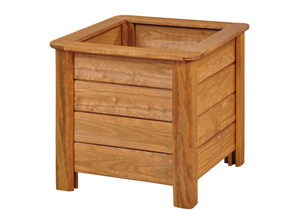 Donica TRENTO o wymiarach 40x40x40 cm należy do całej wyjątkowej serii TRENTO.  Cechuje się pięknym i oryginalnym  kolorem złotego dębu, który doskonale komponuje się z zieloną architekturą otoczenia. Produkt w pełni spełniający oczekiwania, utrzymany w nowoczesnym designie. Przykuwa uwagę ekskluzywną formą wykonania.  Wraz z pozostałymi produktami tej linii tworzy dopełnienie niepowtarzalnych aranżacji. Jej klasyczny kształt w połączeniu z wyrafinowaną kolorystyką powoduje, iż donica również świetnie się prezentuje na tarasach i balkonach. Jest ciekawym rozwiązaniem dla starannie przemyślanych aranżacji. Do malowania użyta została wodorozcieńczalna lazura do drewna. Lazura chroni drewno przed wysoką wilgotnością  oraz promieniowaniem UV. Zapewnia również wysoką trwałość koloru  i ochronę drewna przez około 3 sezony.
