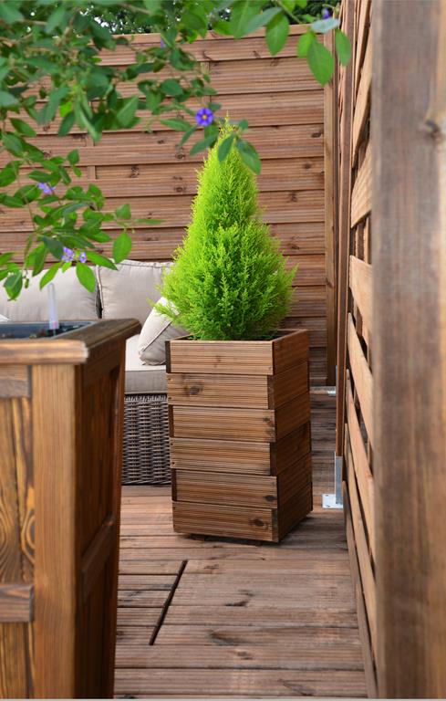 Drewno zostało zaimpregnowane ciśnieniowo, co gwarantuje ochronę  przed działaniem niesprzyjających warunków atmosferycznych, a także przed szkodnikami i grzybami jednocześnie wybarwia drewno  ciepłym brązowym kolorem.