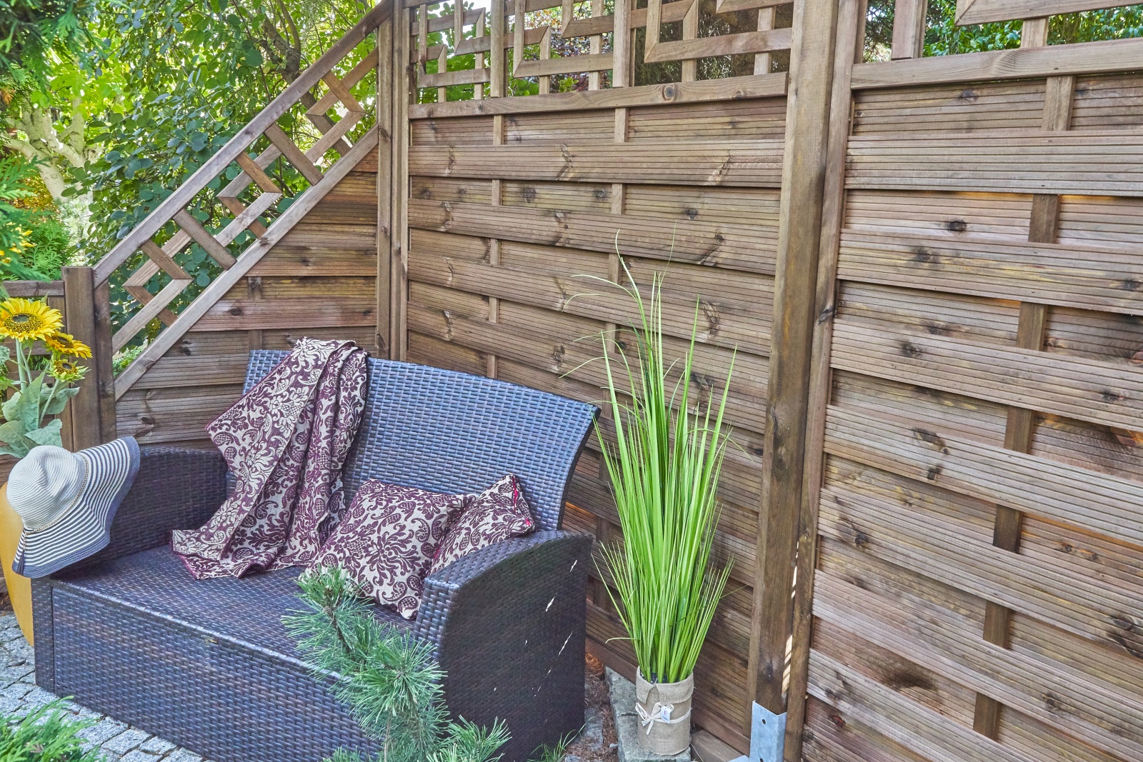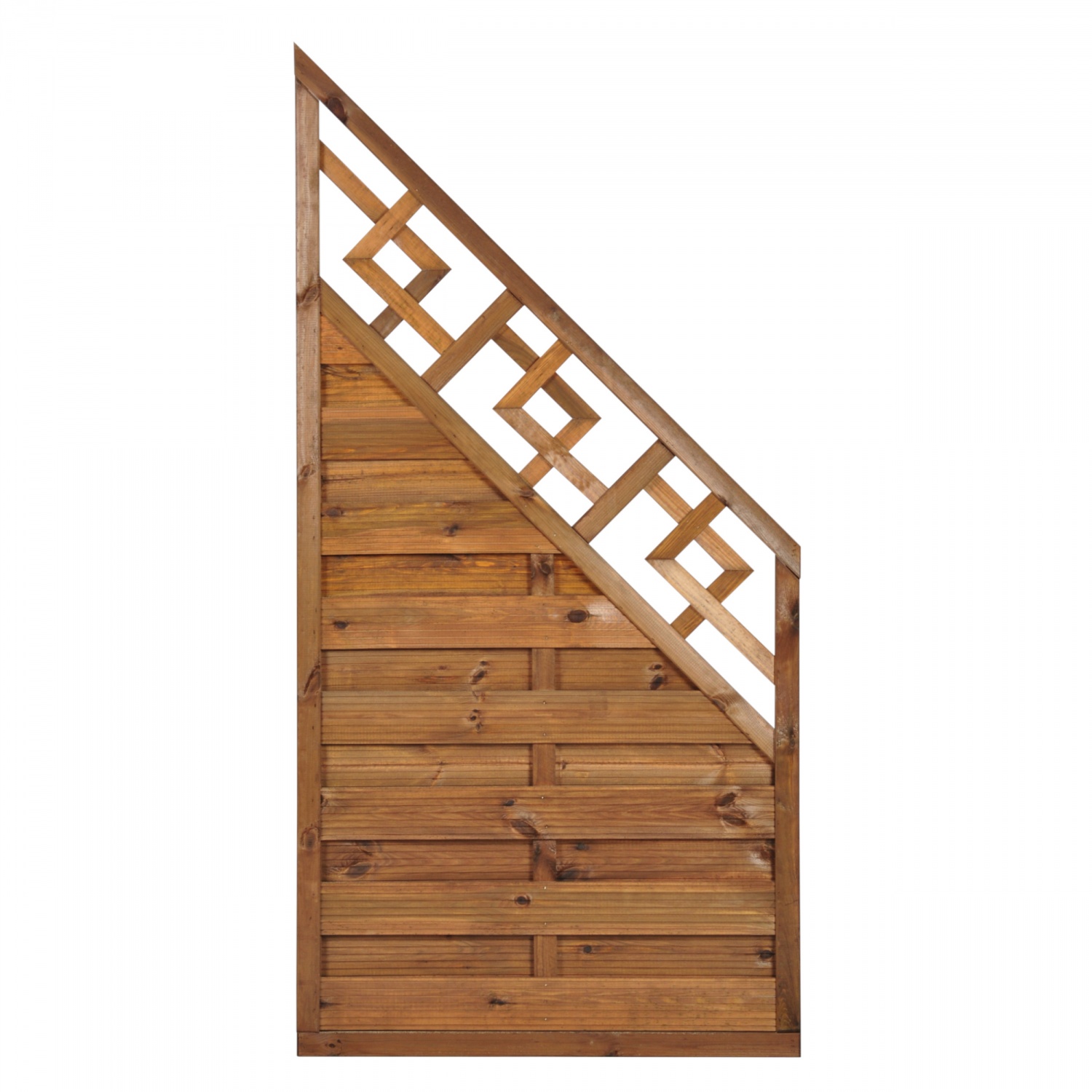 Płot ażurowy BJORK skośny o wymiarach 90cmx180cm brąz  to wyjątkowa propozycja dla osób ceniących solidność wykonania w połączeniu z elegancją. Płot o masywnej ramie, powstał jako odpowiedź na potrzeby najbardziej wymagającego klienta. Wraz z pozostałymi płotami z tej linii tworzy idealną kompozycję podczas urządzania dowolnych terenów. Jest też  świetną propozycją, zarówno na ogrodzenie dużych działek, posesji czy przydomowych ogródków. Może być wykorzystany do zakończenia zabudowy z innych płotów z tej serii lub samodzielnie (na przykład na balkonie lub tarasie). Płot impregnowany ciśnieniowo impregnatem z dodatkiem brązowego barwnika, dzięki czemu idealnie współgra z otaczającą go naturą. Dodatkowo impregnat zabezpiecza przed szkodliwym działaniem czynników atmosferycznych oraz przed insektami. Zastosowana brązowa kolorystyka należąca do ciepłych barw ziemi,  z wykorzystaniem odpowiedniej aranżacji, daje poczucie harmonii a ogród czyni miejscem prawdziwego wypoczynku i relaksu.