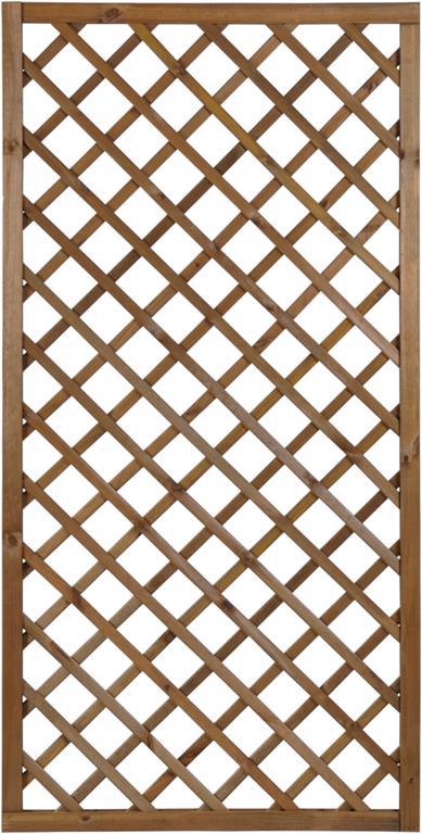 Kratka diagonalna BJORK R34 prosta 90x180 Brąz stanowi element architektury ogrodowej służący do aranżacji ogrodu, jak również do stworzenia niepowtarzalnego otoczenia wokół domu. Jej połączenie z pnącymi roślinami daje możliwość wykonania wielu pięknych i eleganckich kompozycji. Kratka stanowi również doskonałą podporę dla roślin, wspomagając tym samym ich wzrost. Dzięki niej jesteśmy w stanie samodzielnie wykreować wymarzoną  strefę wypoczynku i relaksu. Ażurowa konstrukcja wraz z roślinami zapewni przyjemny cień oraz kameralne otoczenie, jednocześnie umożliwiając stały dostęp świeżego powietrza. Kratkę można także zamontować na balkonie w celu zachowania większej prywatności, a pnące kwiaty dodatkowo go upiększą. Drewno zostało zaimpregnowane ciśnieniowo, co gwarantuje ochronę  przed grzybami niszczącymi drewno i owadami a jednocześnie wybarwia drewno  ciepłym brązowym kolorem.