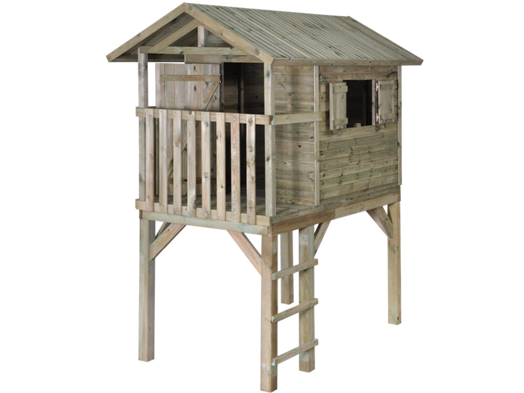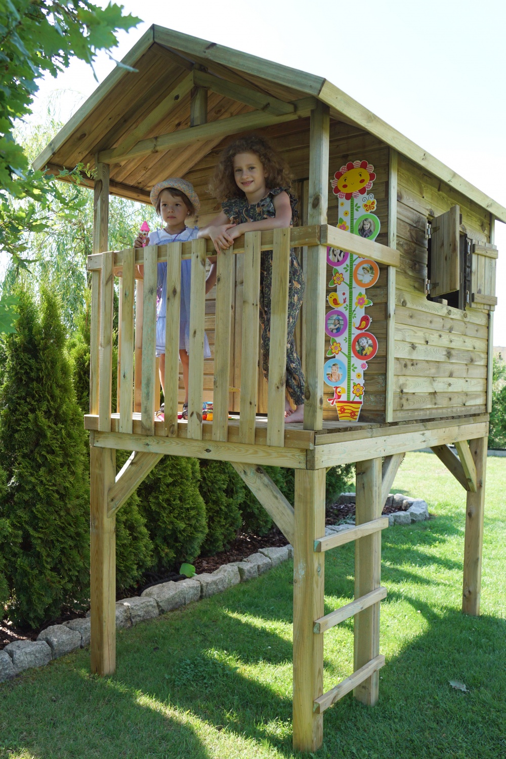 Podstawa do Domku  umożliwia ustawienie Domku Jakob na wysokości 120 cm, co dodatkowo uatrakcyjnia zabawę. Domek z podstawą posiada balkon oraz miejsce do montażu zjeżdżalni. Całość stanowi stabilną konstrukcję wzbogaconą o barierką zabezpieczającą.