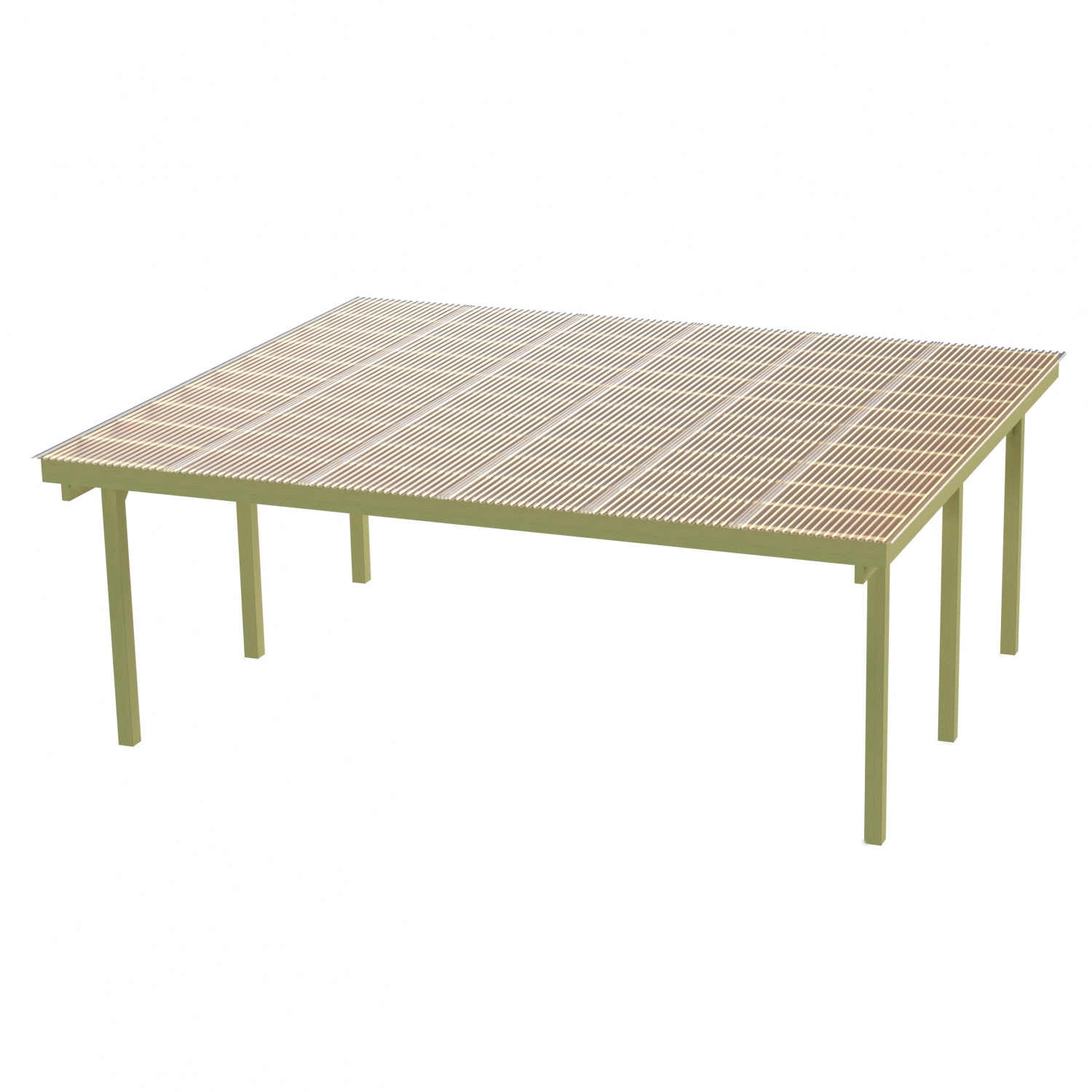 Drewniana wiata dwustanowiskowa z pokryciem zapewni miejsce do garażowania dwóch samochodów lub przechowywania innych niezbędnych sprzętów w gospodarstwie przydomowym a jednocześnie nie zakłóci naturalnego krajobrazu ogrodu.  Z powodzeniem może zastąpić murowany na stałe garaż, umożliwiając tym samym oszczędności finansowe oraz przestrzeni.