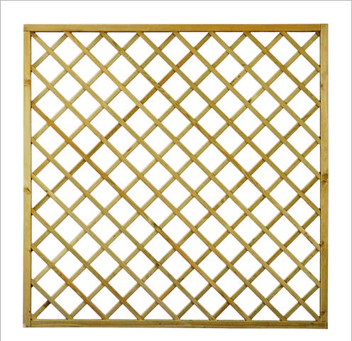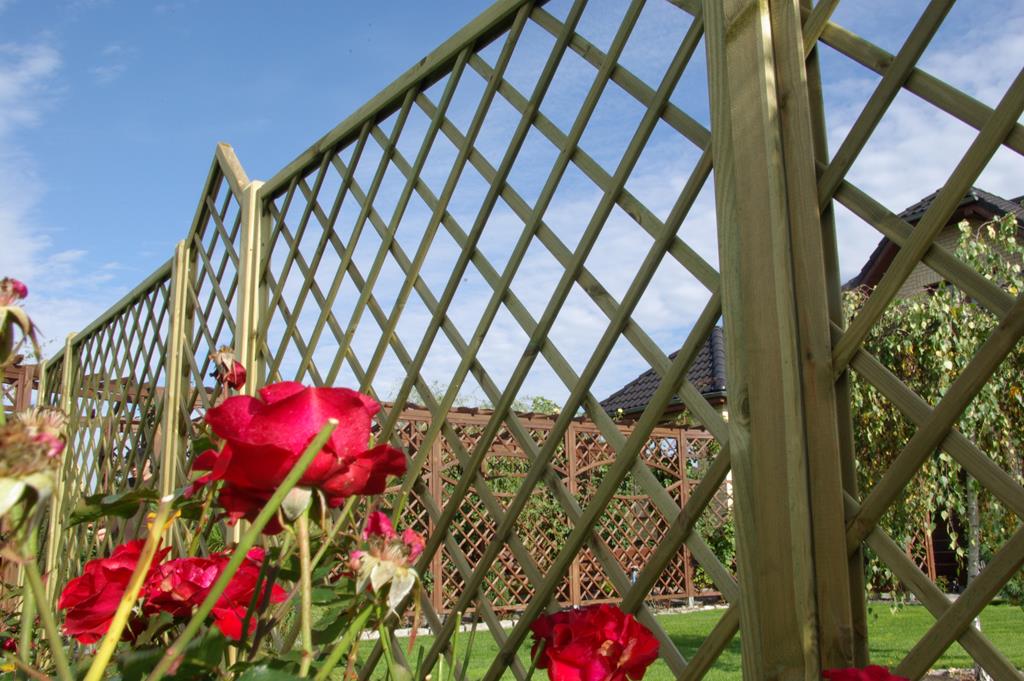 Kratka DIAGONALNA R34 prosta 180x180 stanowi element architektury ogrodowej służący do aranżacji ogrodu jaki i do stworzenia niepowtarzalnego otoczenia wokół domu. Jej połączenie z pnącymi roślinami daje możliwość wykonania wielu pięknych i eleganckich kompozycji. Kratka stanowi również doskonałą podporę dla roślin, wspomagając tym samym ich wzrost. Dzięki niej jesteśmy w stanie samodzielnie wykreować wymarzoną  strefę wypoczynku i relaksu. Ażurowa konstrukcja wraz z roślinami zapewni przyjemny cień oraz kameralne otoczenie, jednocześnie umożliwiając stały dostęp świeżego powietrza. Drewno zostało zaimpregnowane ciśnieniowo, co gwarantuje ochronę  przed grzybami niszczącymi drewno i owadami. Dodatkowym atutem jest możliwość pomalowania kratki na dowolny kolor.