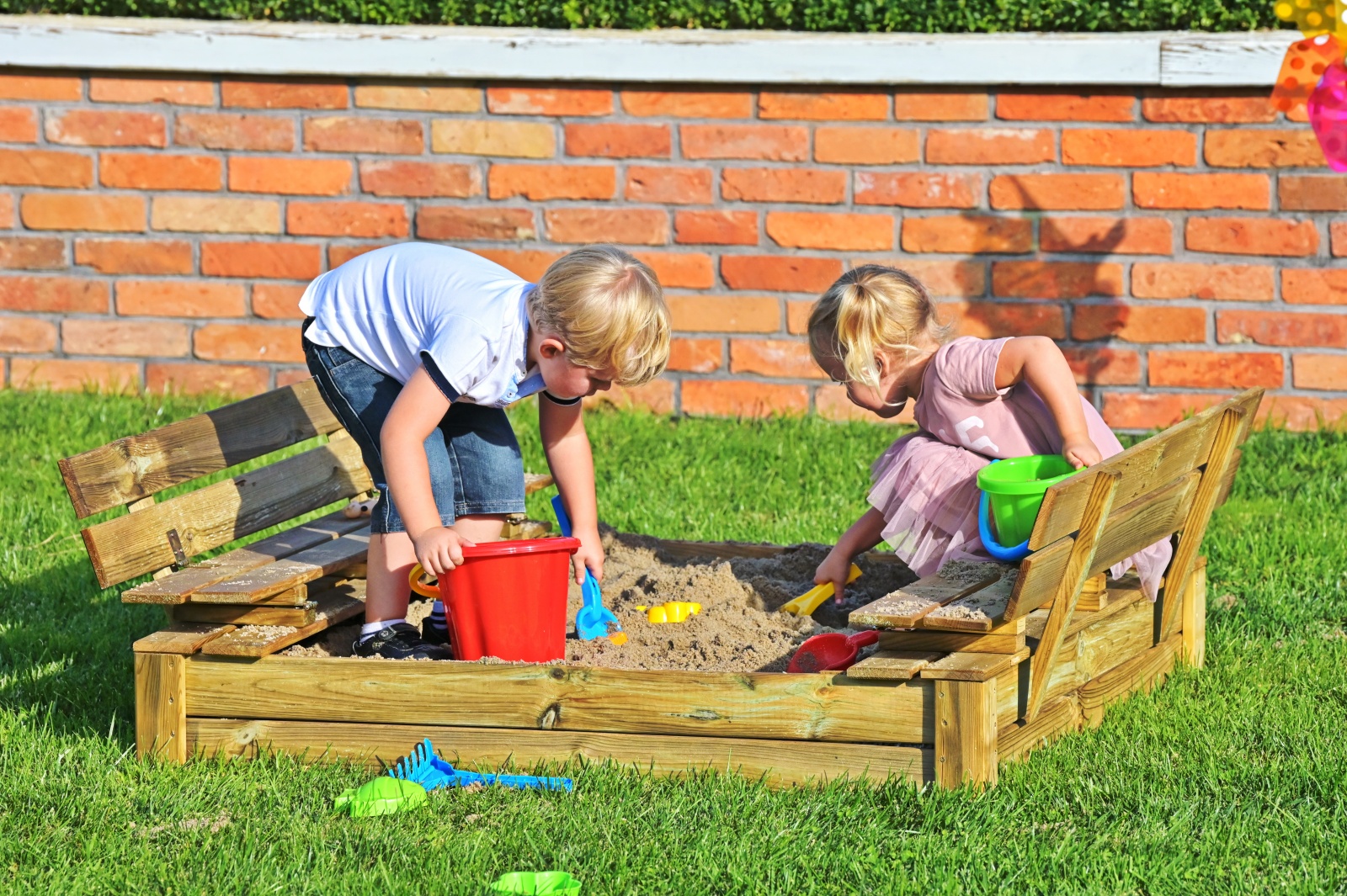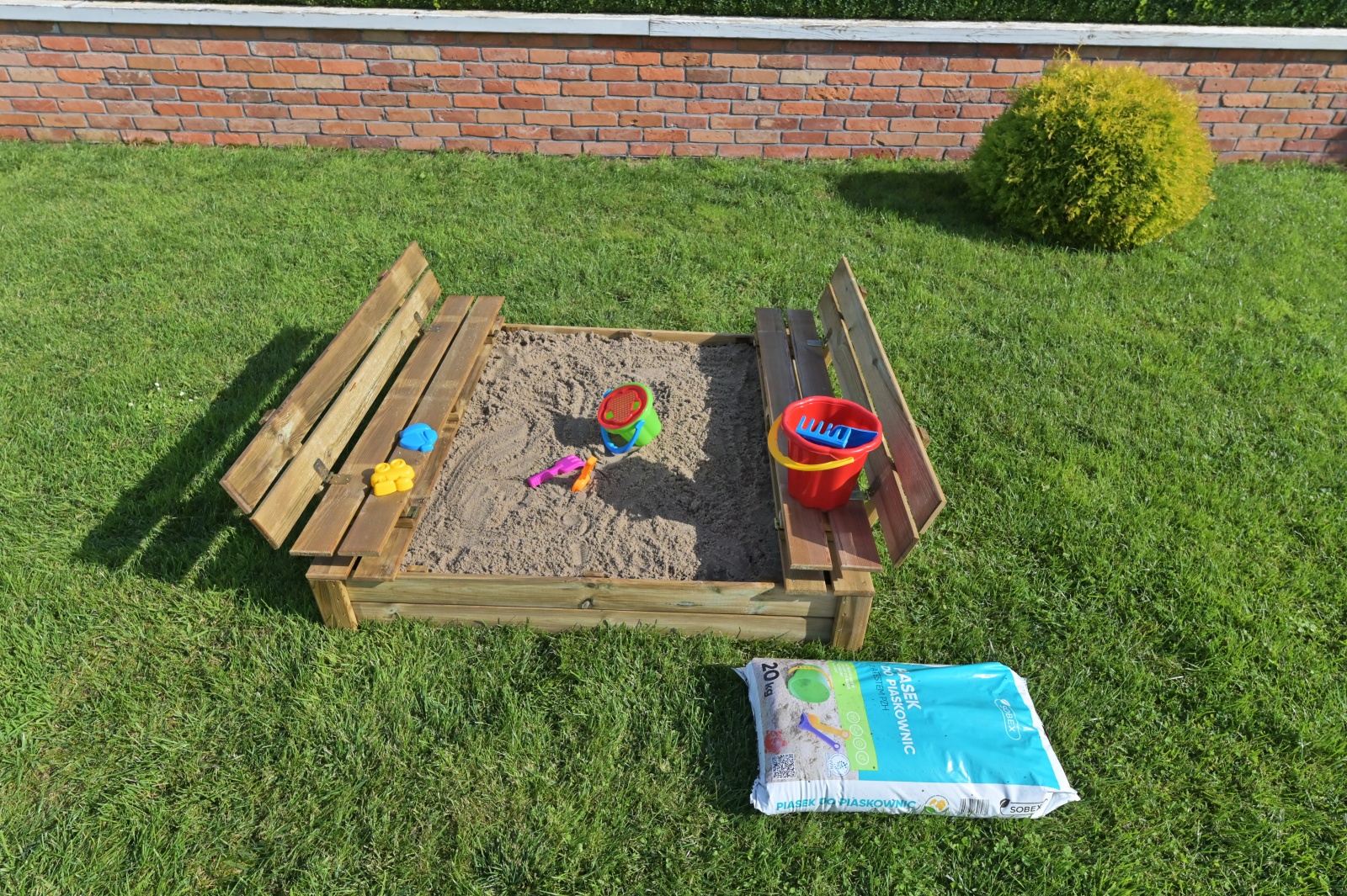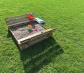 Piaskownica Tomek sprawdzi się w małych przydomowych ogródkach.  Posiada zamykaną pokrywę, chroniącą piasek przed wszelkimi zanieczyszczeniami zewnętrznymi oraz dostępem zwierząt. Pokrywa piaskownicy po rozłożeniu pełni funkcję dwóch wygodnych ławeczek