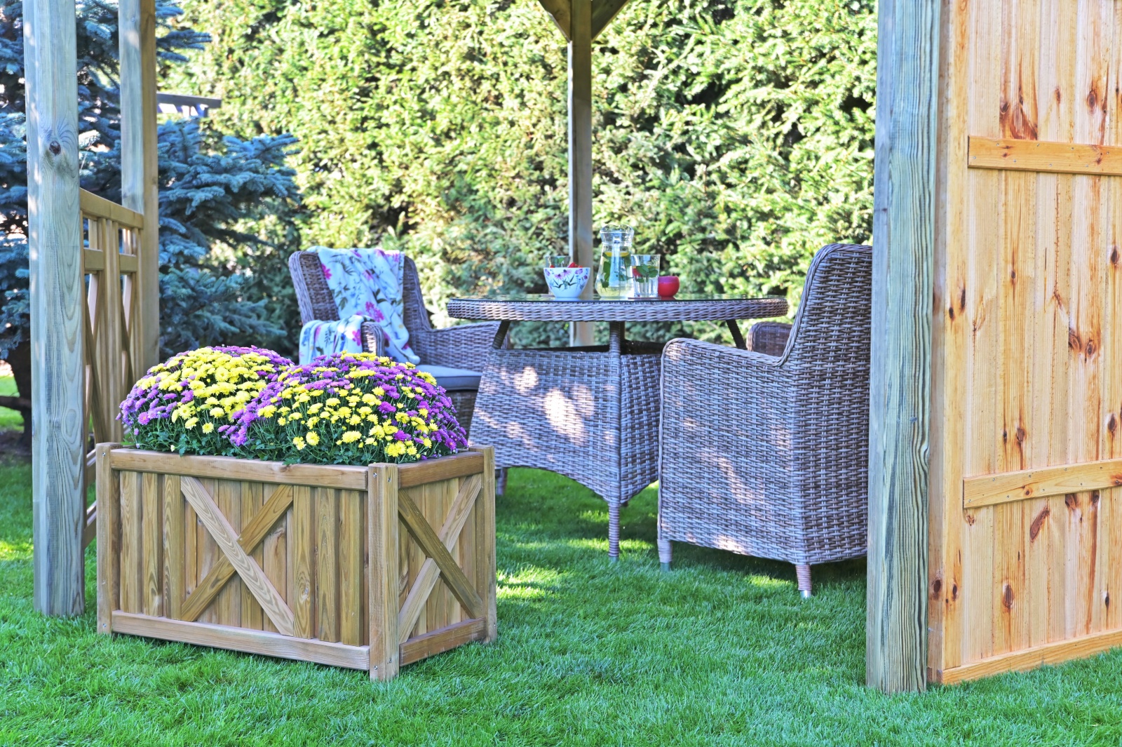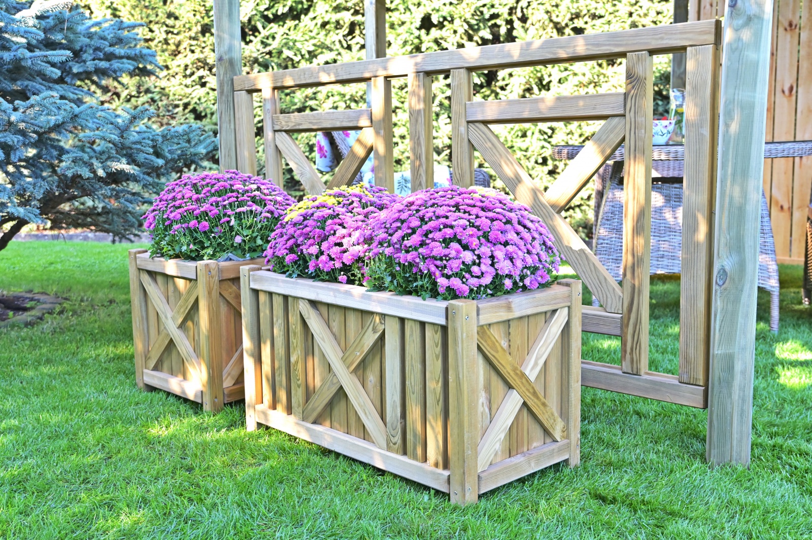 Donica BAWARIA o wymiarach 80x37x40 cm z serii BAWARIA to solidne wykonanie w połączeniu z tradycyjnym wzornictwem nawiązującym do klimatów malowniczej Bawarii.  Wraz z pozostałymi produktami tej serii tworzy idealną kompozycję podczas urządzania terenów wokół domu jak również balkonów i tarasów. Jest idealna do tworzenia w niej pięknych kompozycji z różnorodnych roślin. Zastosowanie impregnacji ciśnieniowej gwarantuje ochronę drewna  przed grzybami niszczącymi drewno i owadami.