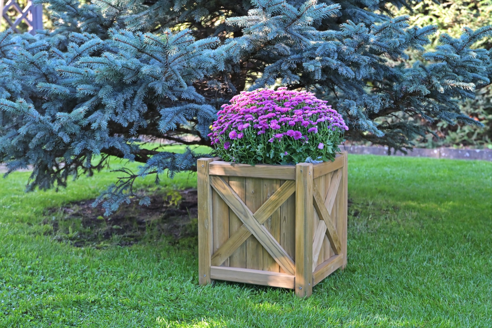 Donica BAWARIA o wymiarach 37x37x40 cm z serii BAWARIA to solidne wykonanie w połączeniu z tradycyjnym wzornictwem nawiązującym do klimatów malowniczej Bawarii.  Wraz z pozostałymi produktami tej serii tworzy idealną kompozycję podczas urządzania terenów wokół domu jak również balkonów i tarasów. Jest idealna do tworzenia w niej pięknych kompozycji z różnorodnych roślin. Zastosowanie impregnacji ciśnieniowej gwarantuje ochronę drewna  przed grzybami niszczącymi drewno i owadami.