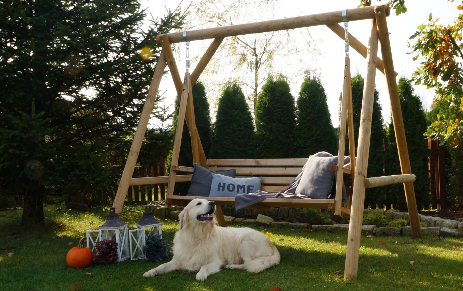 Huśtawka wykonana jest z drewna sosnowego poddanego impregnacji ciśnieniowej, co gwarantuje ochronę przed grzybami niszczącymi drewno i owadami. Zastosowany impregnat nadaje jej naturalny koloryt i ekologiczny charakter, umożliwia również pomalowanie drewna na dowolny kolor. Wszystkie elementy montażowe są wykonane ze stali ocynkowanej.